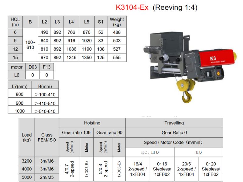 Đây cũng là một dòng pa lăng đặc biệt được thiết kế để chống lại sự xâm nhập của bụi trong quá trình pa lăng hoạt động. Nó thường được sử dụng trong các môi trường công việc nhiều bụi như sản xuất xi măng, sản xuất thép, chế biến gỗ,... Các model nổi bật của dòng sản phẩm này gồm K2104, K3104, K4104 tải trọng nâng tương ứng từ 1600kg đến 10000kg. Thông số cụ thể xem tại hình bên dưới.