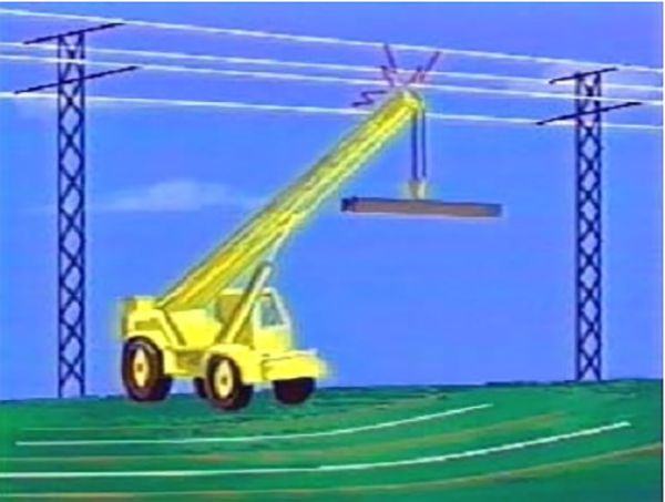 Xe cấu trục tự hành va chạm với các thiết bị điện xung quanh hoặc bị phóng điện cao thế do vi phạm khoảng cách an toàn hành lang điện.